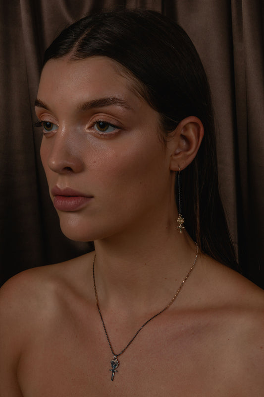 The Ashanti Collection captures the sacred essence of memory, drawing inspiration from the designer's peripatetic grandparents who traveled and lived in Africa for many years. As a young child, Delphine joined her grandparents on their trip and was gifted a traditional fertility doll. This doll, rich in ancient power, captivated her. Her first journey across the sea was a discovery that instilled in her a sense of drive and hope that continued throughout her childhood. The collection warmly embraces the amuletic properties of the Ashanti, perpetualizing traditions and symbolising the power to nurture abundance, happiness, and unconditional love.