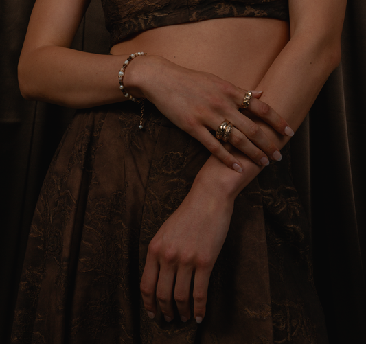 Adorned with pearls shaped by nature's whim, natural and subtle semi-precious stones, each piece is a testament to grandeur, an ode to authenticity.